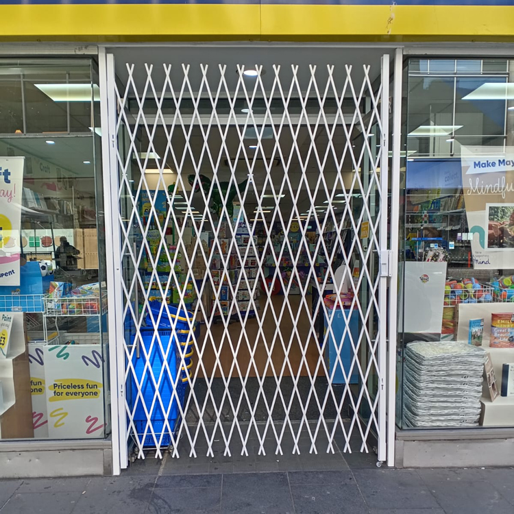 Xpanda folding security gates are designed to deter thieves, provide storefront security, lower insurance payments, and keep your business as secure as it can be. Our high-quality, powder-coated, unique tubular steel scissor-style security gates make it easy for you to open or close your storefront – or a portion of it – in just seconds.